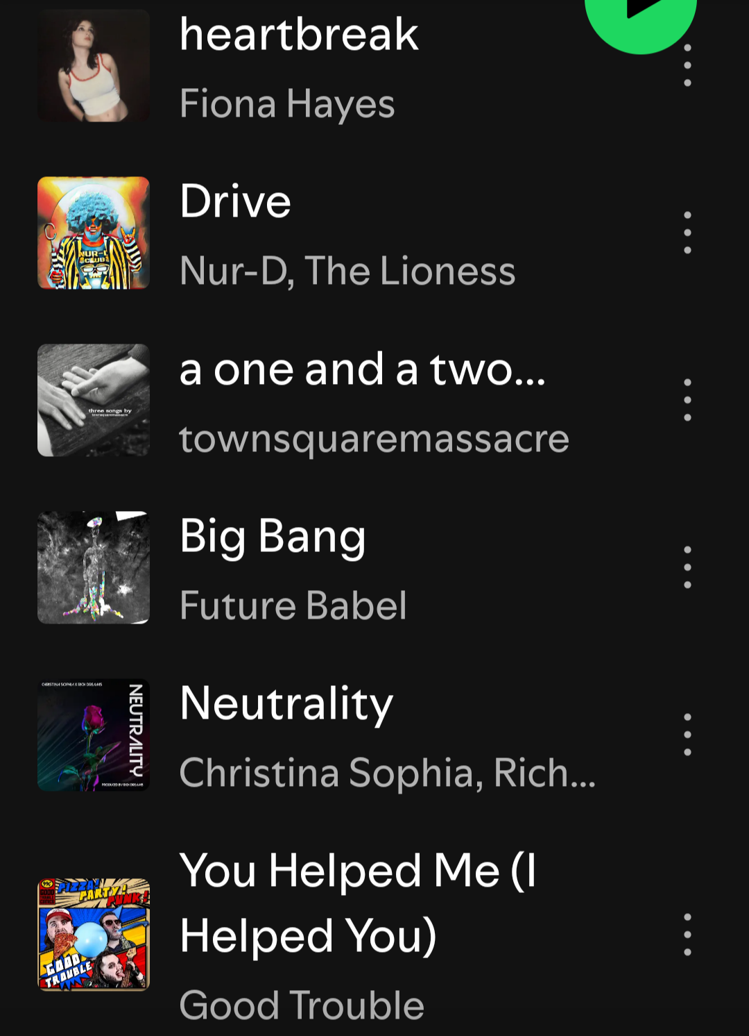 “Heartbreak” by Fiona Hayes released as a single in September 2025. In it, Hayes sets up a scene like a WWE wrestling match - in the ring, her desires and needs are pitted against each other in a controlled, deliberate fight. The outcomes are already decided – she will be the victor – but the performance must go on with its calculated moves. Hayes, or the song’s first person protagonist, knows it’s right to split from her careless, crass lover; he’s an asshole! (“You say you like the type of girls/Who’d never carry mace.”) A breakup is what’s happening, on her terms, yet she sings, “Is it a bad time to tell you I love you still?” and “I’ve got heartbreak on the brain / Never planned to / Still love you.” Wrangling old feelings of fondness and trying to work through what his intentions had been, Hayes lays the picture of termination before us with measured grit over wicked pop-punk instrumentation. Her vocals have depth and texture, completing the rock-leaning, nostalgic sound.